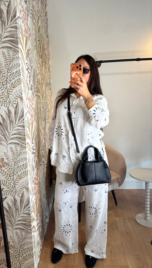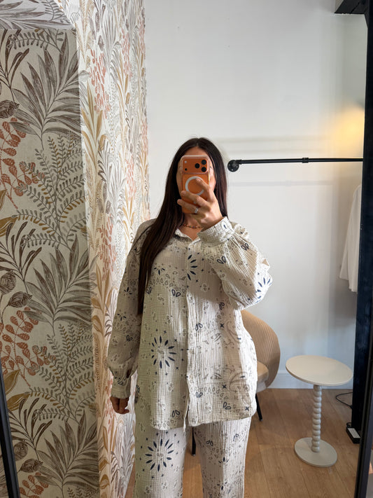 ENSEMBLE GAZ DE COTON BLANC IMPRIMÉ BANDANA