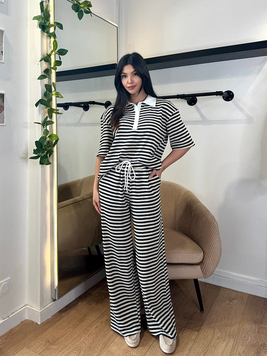 ENSEMBLE POLO RAYÉ NOIR BEIGE