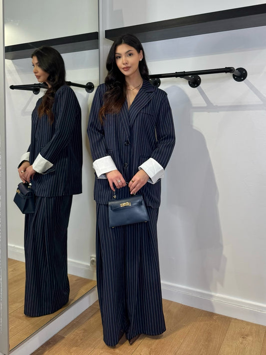 PANTALON À PINCE À RAYURE MARINE