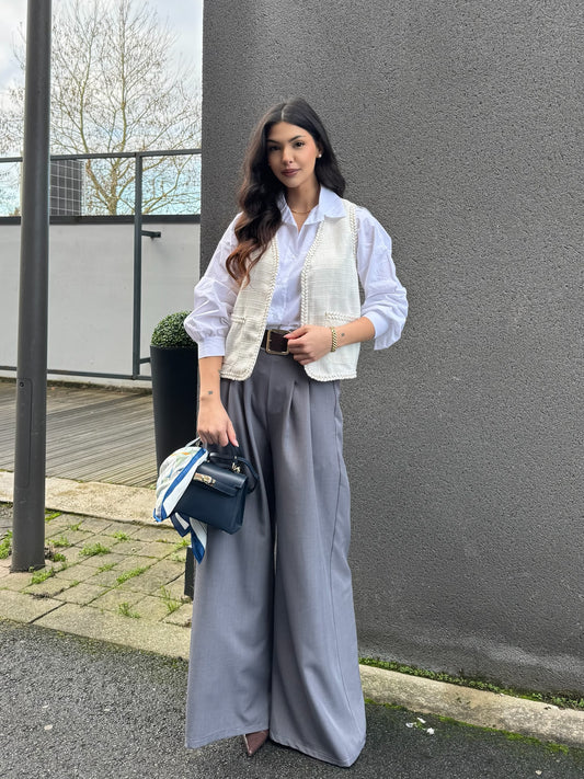 PULL EN MAILLE MANCHE BALLON CRÈME