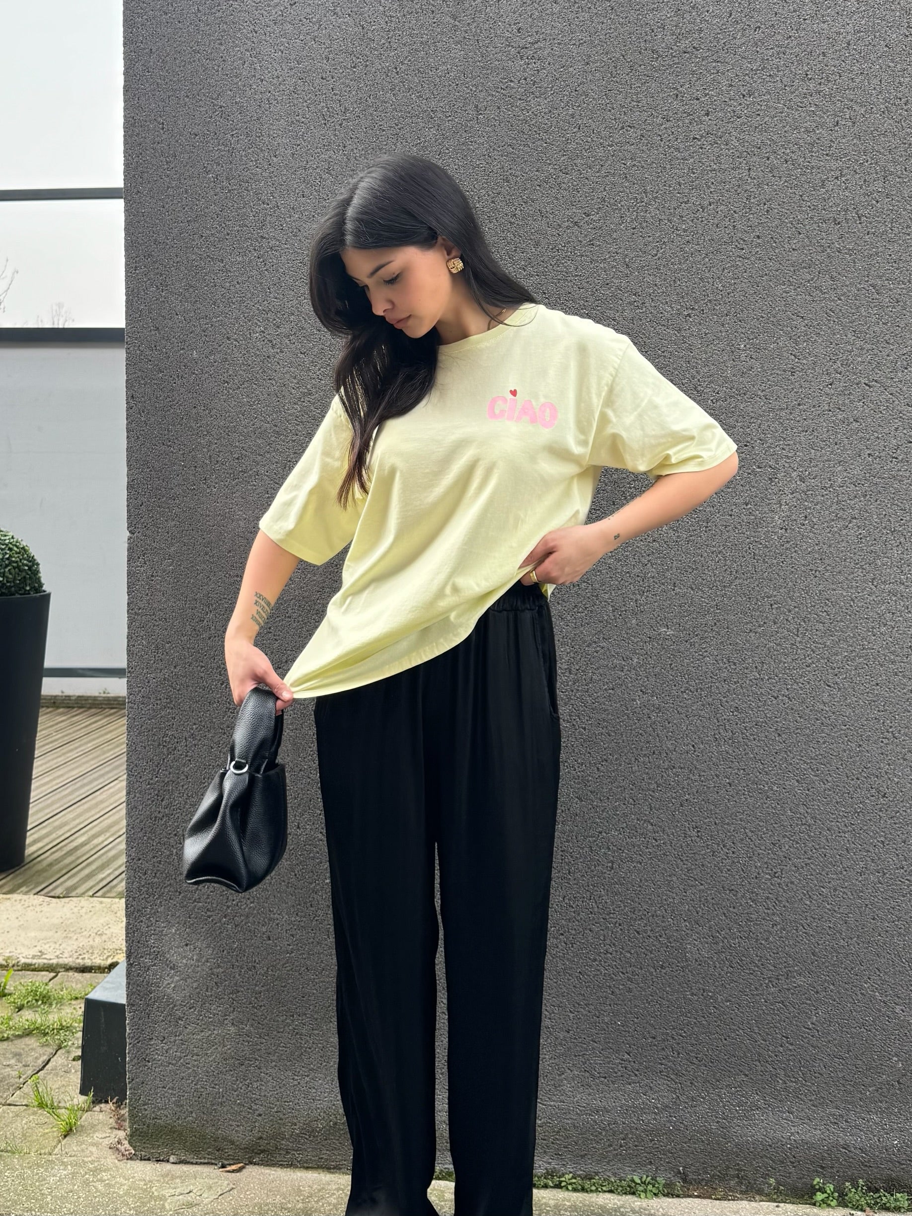 T SHIRT JAUNE imprimer ciao . Taille unique 100% coton.