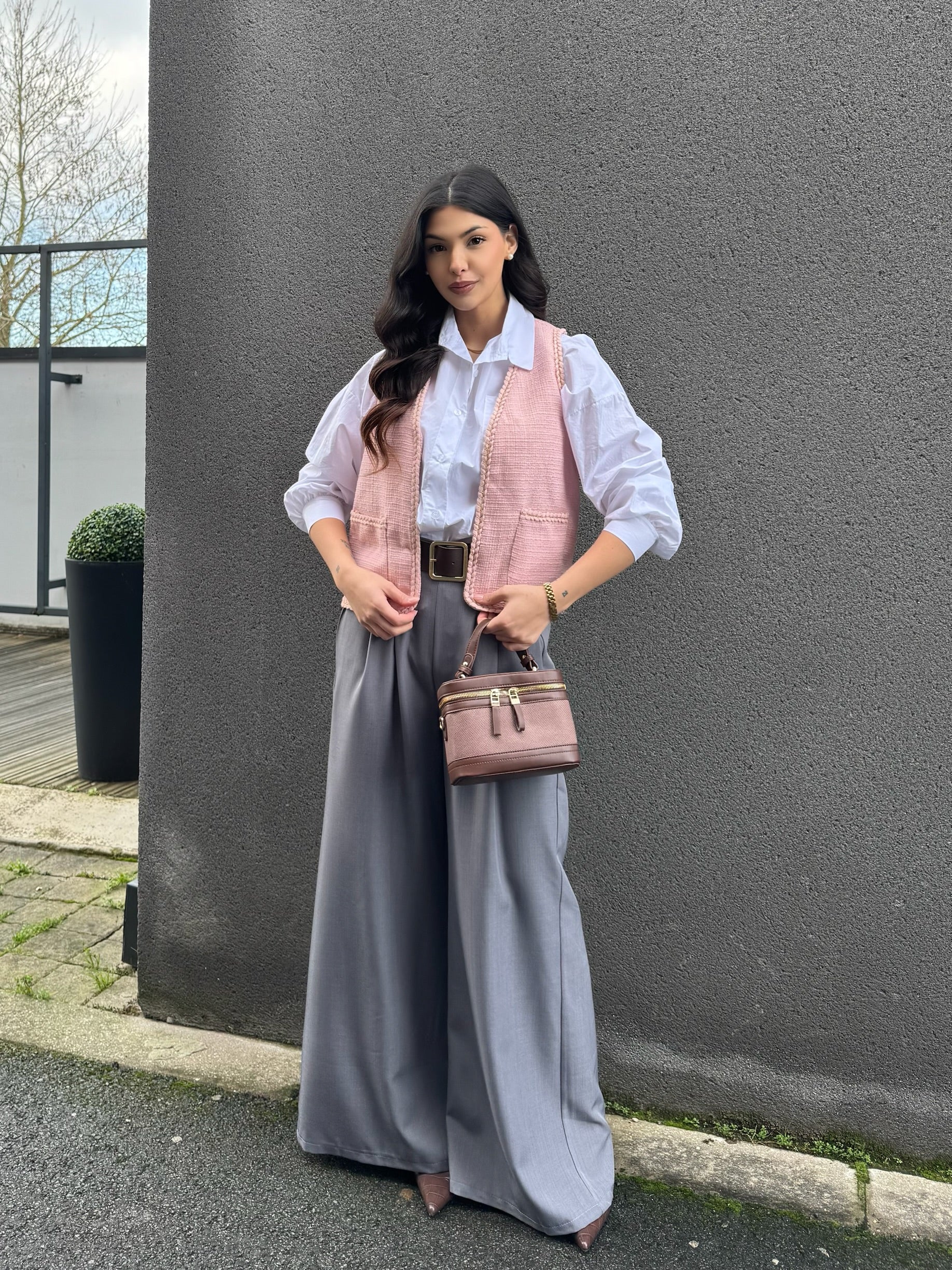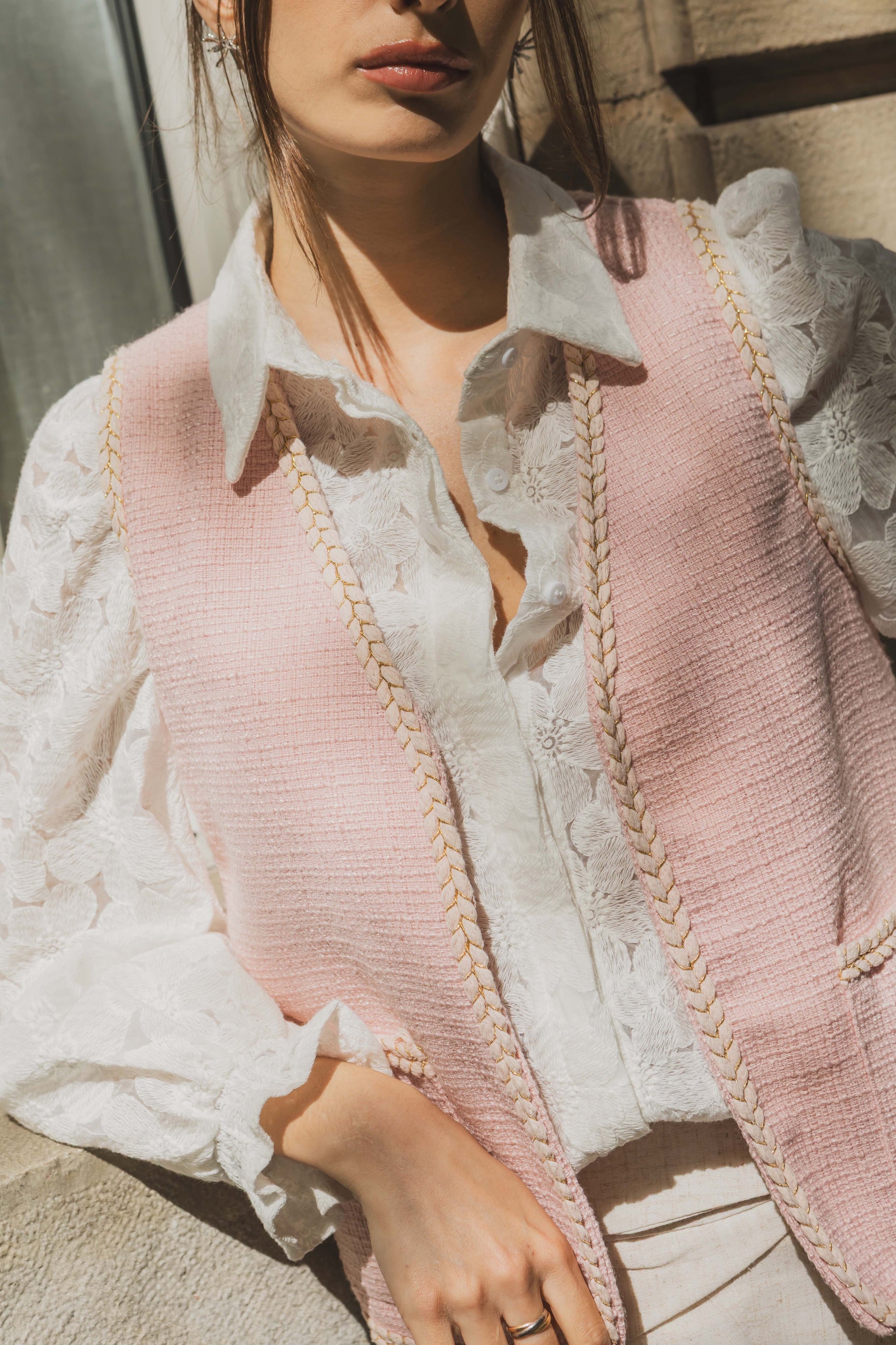 GILET SANS MANCHE TWEED ROSE
