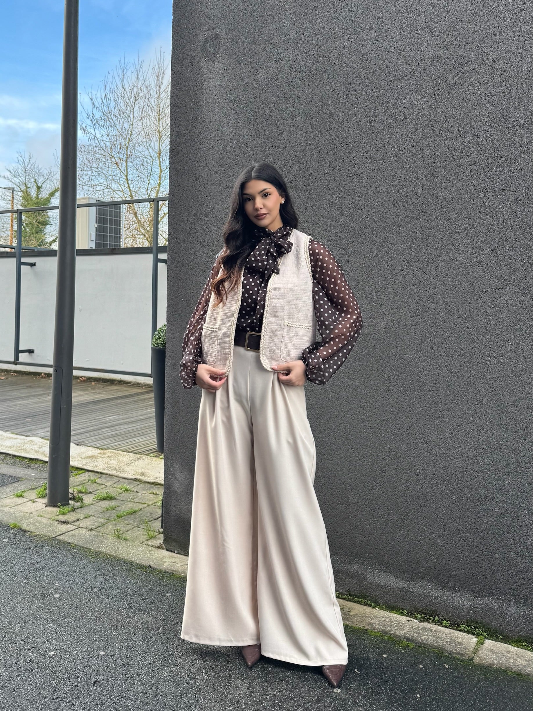 GILET SANS MANCHE TWEED BEIGE
