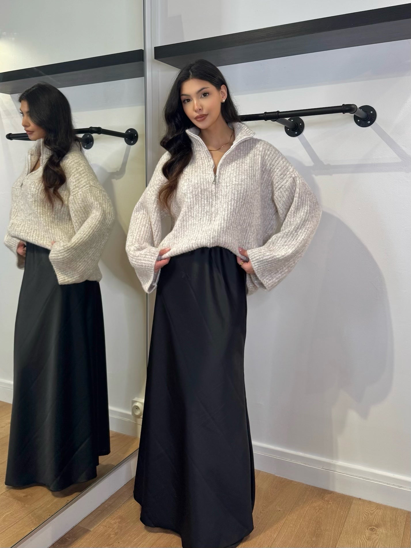 Gilet en maille a zip. Taille unique. Le modèle mesure 1m65