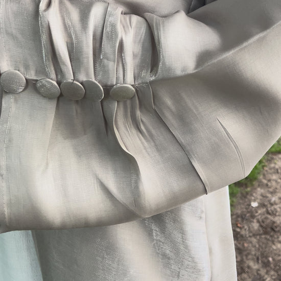 Les manches sont sublimées par de somptueux détails couture, rehaussés de magnifiques boutons ronds soigneusement travaillés, apportant cette touche sophistiquée et structurée qui signe le luxe inspiré de Dubaï.