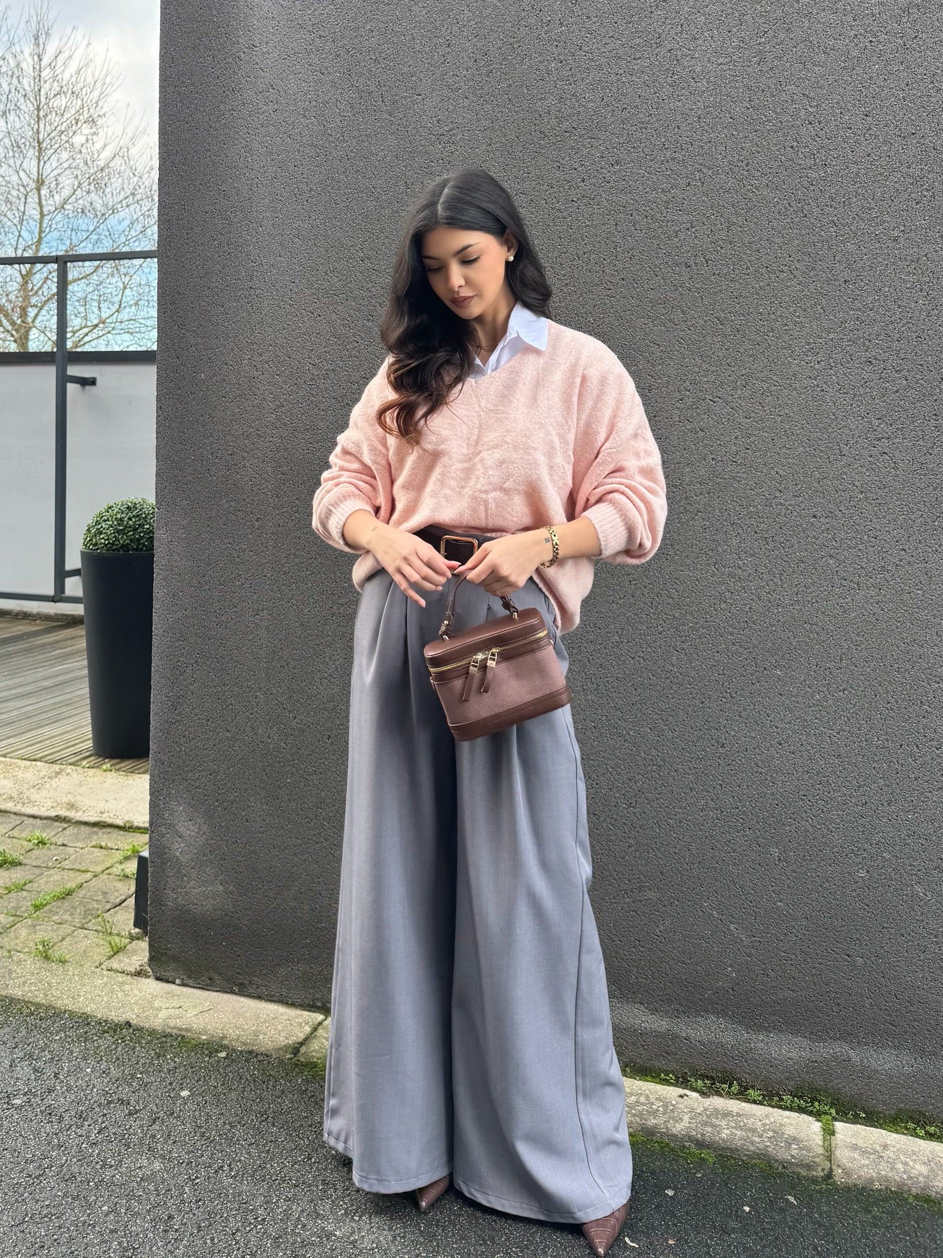 Pull col V couleur rose clair