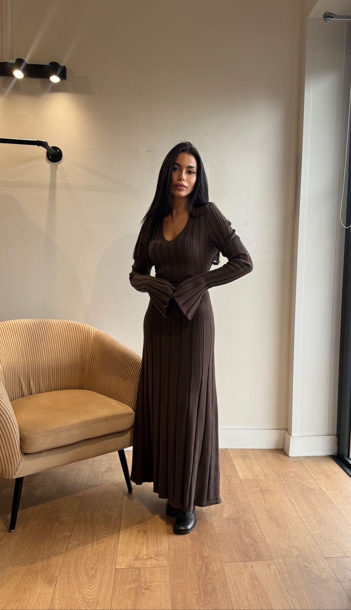 ROBE LONGUE COL V CHOCO